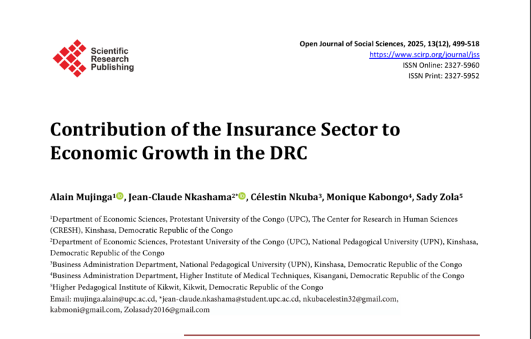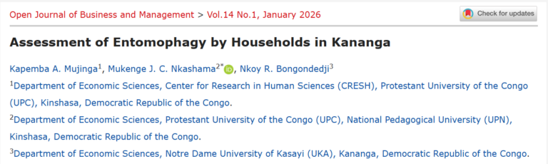 Deux de nos chercheurs Mujinga Alain et Nkashama Jean-Claude sont co-auteurs de cet article.